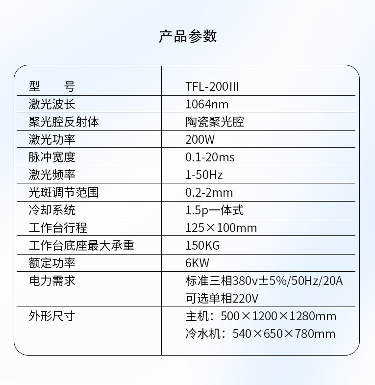TFL-200Ⅲ型模具激光焊機是通發(fā)激光公司在TFL-180Ⅲ的基礎(chǔ)進(jìn)行了改良,采用通發(fā)自主研發(fā)的二代精密單燈電源為燈泵浦驅(qū)動電源,配置觸摸屏,操作更方便。主機具備激光頭手搖升降與工作臺按鈕電動升降實現(xiàn)焊接不同厚度模具的激光焊加工。本款機型更適用于各類高精密注塑模具激光補焊,精密塑膠模具零件激光修補,塑膠模具鈹銅零件激光燒焊;可對模具使用過程中出現(xiàn)的磨損進(jìn)行激光修復(fù);對機械加工失誤、電火花加工失誤,模具減膠設(shè)計變更等需要對模具修改,起到關(guān)鍵的作用,可彌補因加工失誤造成的巨大損失。