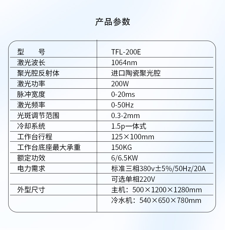 出口型模具激光焊機是通發激光公司專門為出口國外客戶使用而設計的系列機型TFL-200E,適用于各類精密注塑模具、壓鑄模具等模具激光修補焊接;同時也適合鑄件沙孔激光修補、模具崩缺激光修復、過切加工等的激光修補;各類金屬結構件、金銀首飾的激光焊接加工。